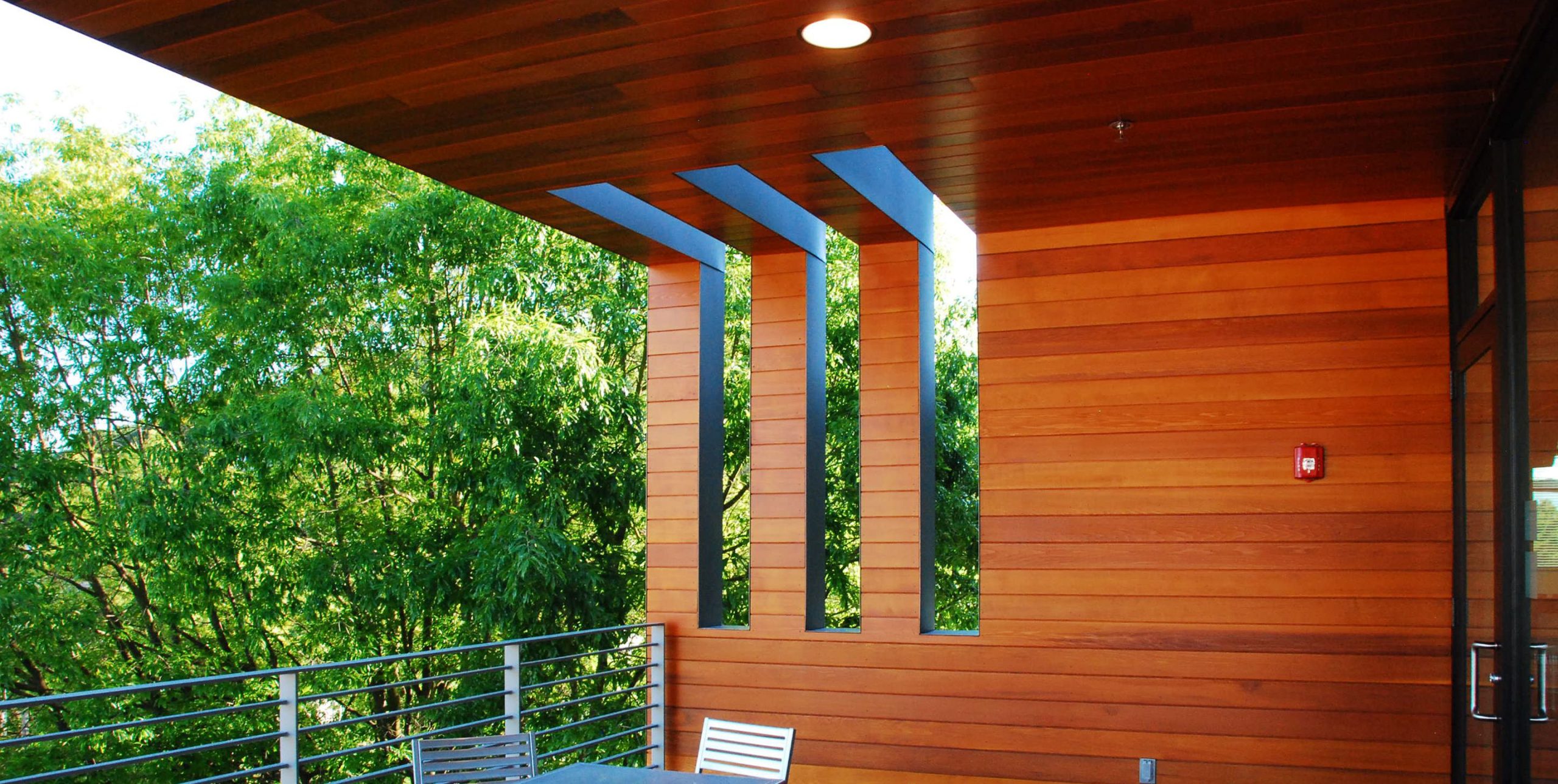Sustainable features include a building footprint designed to maximize natural sunlight, LED lighting, HVAC system with automatic controls, low-flow water fixtures, cisterns utilizing recycled rainwater, permeable driveway to reduce runoff, use of 75 percent reduction of construction waste, recycled building materials, and repurposed materials from reclaimed wood.