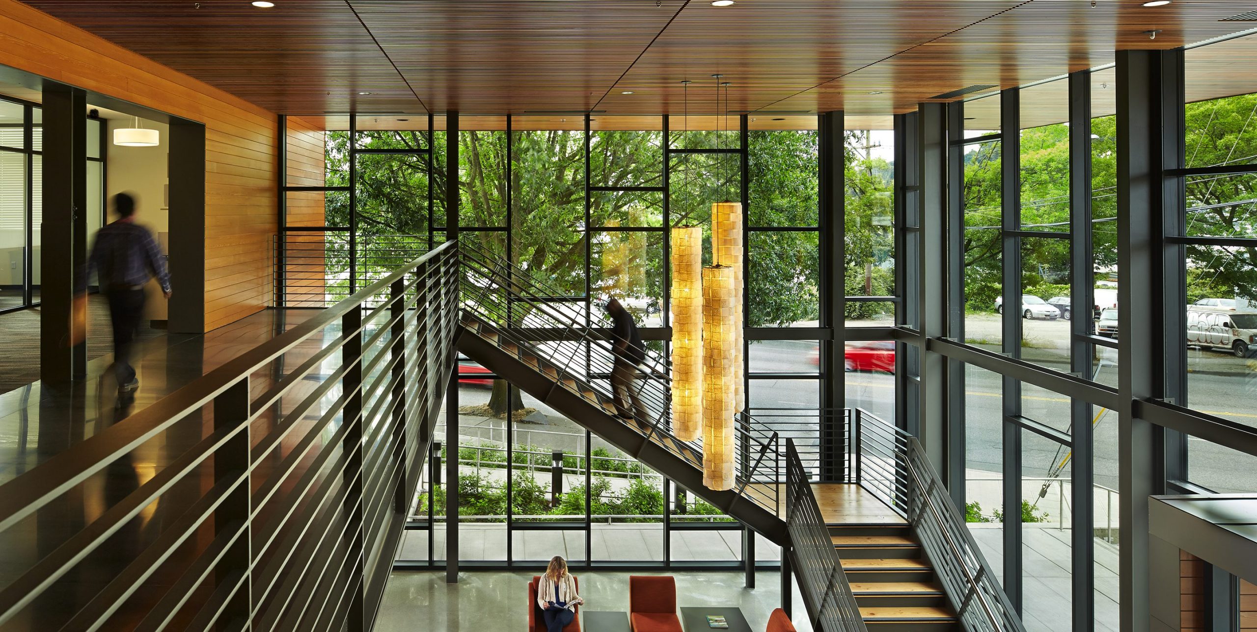 The headquarters building located on the prime corner of Dearborn and Rainer Avenue provides two levels of offices and event spaces and an entire floor of classrooms/computer rooms for job training and education. Structural system is steel framing with special concentric steel braced frames and tilt-up concrete shear walls. Unique to the design is a two-story shoring system that provided for the construction shoring and became the permanent foundations for the structure.